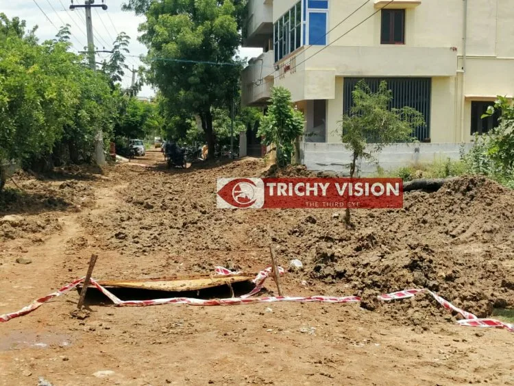 திருச்சி திருவெறும்பூர் பகுதி பாலாஜி நகரில் பாதாள சாக்கடை குழாய் பணி பாதியிலேயே விட்டுச்சென்றுள்ளதாக மாநகராட்சி மீது பொதுமக்கள் குற்றம் சாட்டியுள்ளனர். இதுகுறித்து அப்பகுதியி வசிக்கும் ராஜேந்திரன் கூறுகையில்… மாநகராட்சியில் பாதாள சாக்கடை சீரமைப்பு பணி 2019ல் தொடங்கியது . பணிகள் நிறைவடைவதற்கு முன்பே திடீரென்று நிறுத்தப்பட்டது நவம்பர் மாதத்திற்கு பிறகு எந்த வேலையும் இங்கு நடக்கவில்லை.