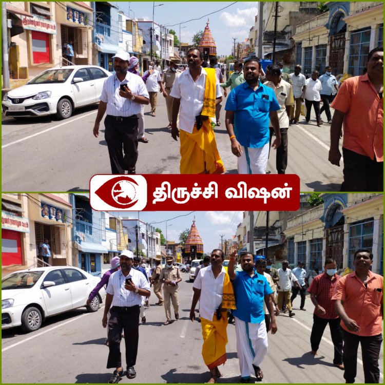 108 வைணவ தலங்களில் முதன்மையானதும் பூலோக வைகுண்டம் என்று அழைக்கப்படும் ஸ்ரீரங்கம் கோயிலில் சித்திரைத் தேரோட்டம் நாளை (29.04.2022) நடைபெற உள்ளது. 40 அடி உயர திருத்தேரில் அதிகாலை நம்பெருமாள் உபய நாச்சியாருடன் எழுந்தருள்வார். பின்னர் காலை 6 மணிக்கு திருத்தேர் வடம் பிடித்து பக்தர்களால் இழுக்கப்படுகிறது. இந்நிலையில் நேற்று (27.04.2022) தஞ்சையில் சப்பரம் விபத்து நடந்ததை அடுத்து இன்று காலை திருச்சி மாவட்ட ஆட்சியர் சிவராசு மாநகர காவல் ஆணையர் கார்த்திகேயன் உள்ளிட்டோர் நேரில் தேரோடும் வீதிகளை பார்வையிட்டு ஆய்வு செய்தனர் .