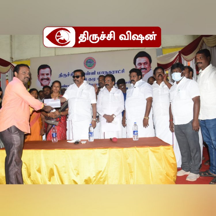 தமிழக முதலமைச்சர் உத்தரவின்படி திருச்சிராப்பள்ளி மாநகராட்சி தொடர்பான மக்களின் கோரிக்கை மனுக்களை பெற்று தீர்வு காணும் வகையில் மக்களை தேடி மாநகராட்சி முகாம் ஸ்ரீரங்கம் தேவி மஹாலில் மாநகராட்சி மேயர் மு.அன்பழகன் தலைமையில் இன்று (27.07.22) நடைபெற்ற முகாமில் நகராட்சி நிர்வாகத் துறை அமைச்சர் கே.என்.நேரு கலந்துகொண்டு பயனாளிகளுக்கு கட்டிட அனுமதி, சொத்து வரி, பெயர் மாற்றம், சர்வே வரைபட நகல் உள்ளிட்ட ஆணைகளை வழங்கினார்.