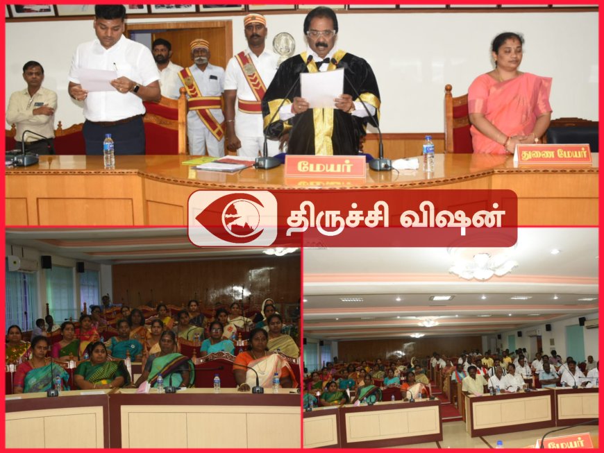 திருச்சிராப்பள்ளி மாநகராட்சி மாமன்ற கூட்டம் மேயர் மு அன்பழகன் தலைமையில் மாநகராட்சி ஆணையர் வைத்தியநாதன் துணை மேயர் திவ்யா ஆகியோர் முன்னிலையில் இன்று நடைபெற்றது.