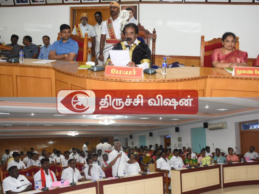 திருச்சிராப்பள்ளி மாநகராட்சி மாமன்ற கூட்டம் மேயர் மு.அன்பழகன் தலைமையில், மாநகராட்சி ஆணையார் மரு.இரா.வைத்திநாதன், துணை மேயர் ஜி.திவ்யா, ஆகியோர் முன்னிலையில் இன்று (31.10.2023) நடைபெற்றது.