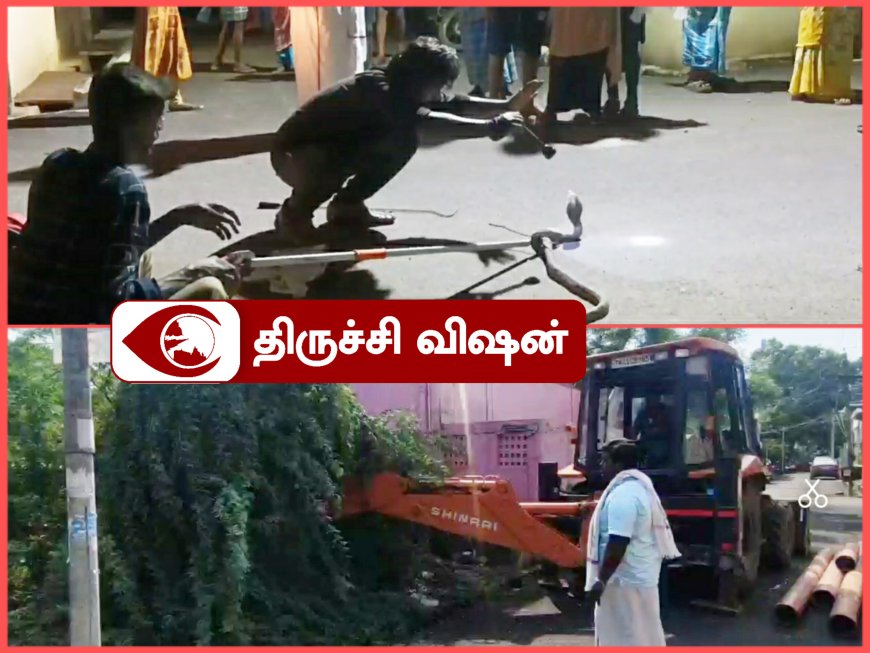 திருச்சி மாநகராட்சிக்கு உட்பட்ட 43 வது வார்டு காட்டூர் அம்பேத்கர் நகர் மூன்றாவது தெரு பகுதியில் குடியிருப்புகள் அதிகம் உள்ன. இந்த பகுதியில் கடந்த ஒரு வார காலமாக அச்சம் அளிக்கும் வகையில் வீடுகளுக்குள் புகுந்த கடும் விஷம் கொண்ட 6அடி நல்ல பாம்பை பிடிப்பதற்கு அப்பகுதி மக்கள் முயற்சி செய்தும் முடியாத பட்சத்தில் 43 வது வார்டு கவுன்சிலர் செந்தில்குமாரிடம் முறையிட்டனர்.