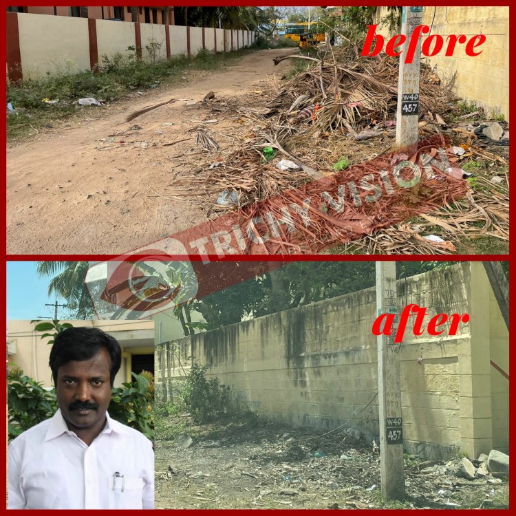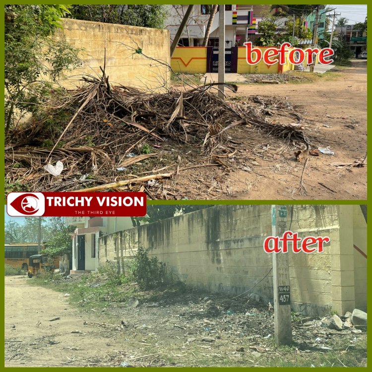 திருச்சி மாநகராட்சி 57 வது வார்டில் எடமலைப்பட்டிபுதூர் கங்கை நகர் பகுதியில் குப்பைகள் அதிகமாக இருப்பதாக அப்பகுதியின் மாமன்ற உறுப்பினர் முத்து செல்வத்திற்கு பொதுமக்கள் புகார் கைப்பேசி எண்ணில் தெரிவித்தனர். உடனடியாக வார்டு கவுன்சிலர் முத்துச்செல்வம் மாநகராட்சி ஊழியர்களுக்கு தகவல் கொடுத்து அந்த மரக் கழிவுகளை அகற்றி அப்பகுதியை சுத்தம் செய்தார்.