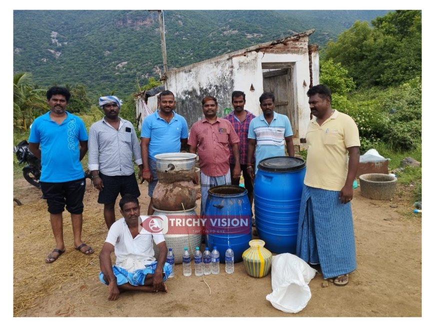 திருச்சிராப்பள்ளி மாவட்டம், உப்பிலியபுரம் காவல் நிலைய எல்லைக்குட்பட்ட நெட்டவேலம்பட்டி மற்றும் சுற்றுவட்டார கிராம பகுதிகளில் சாராயம் ஊரல் போட்டதாக மாவட்ட காவல் உதவி எண் (Help Line) 9487464651 மூலம் இரகசிய தகவல் கிடைக்கப்பெற்றது.