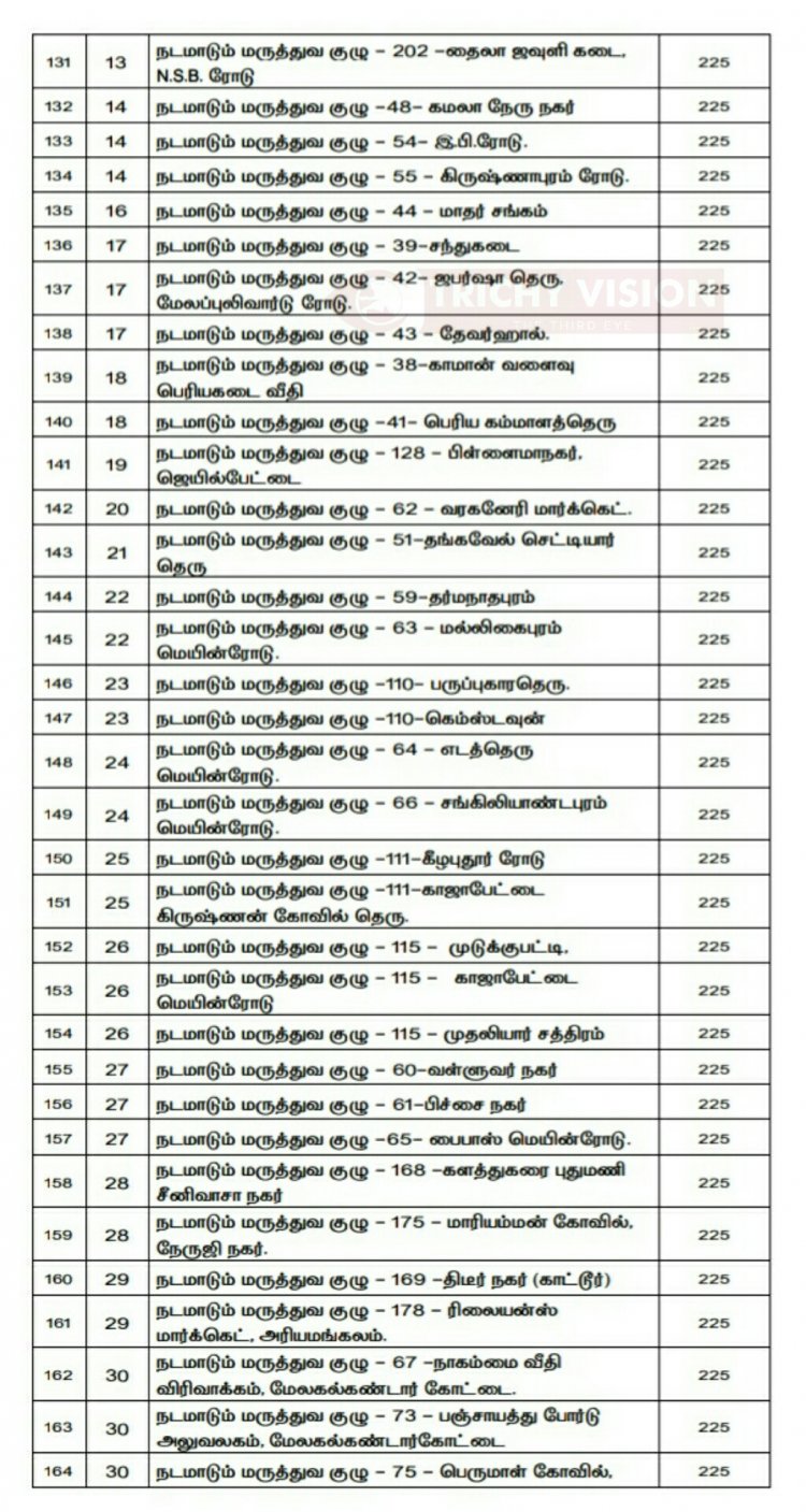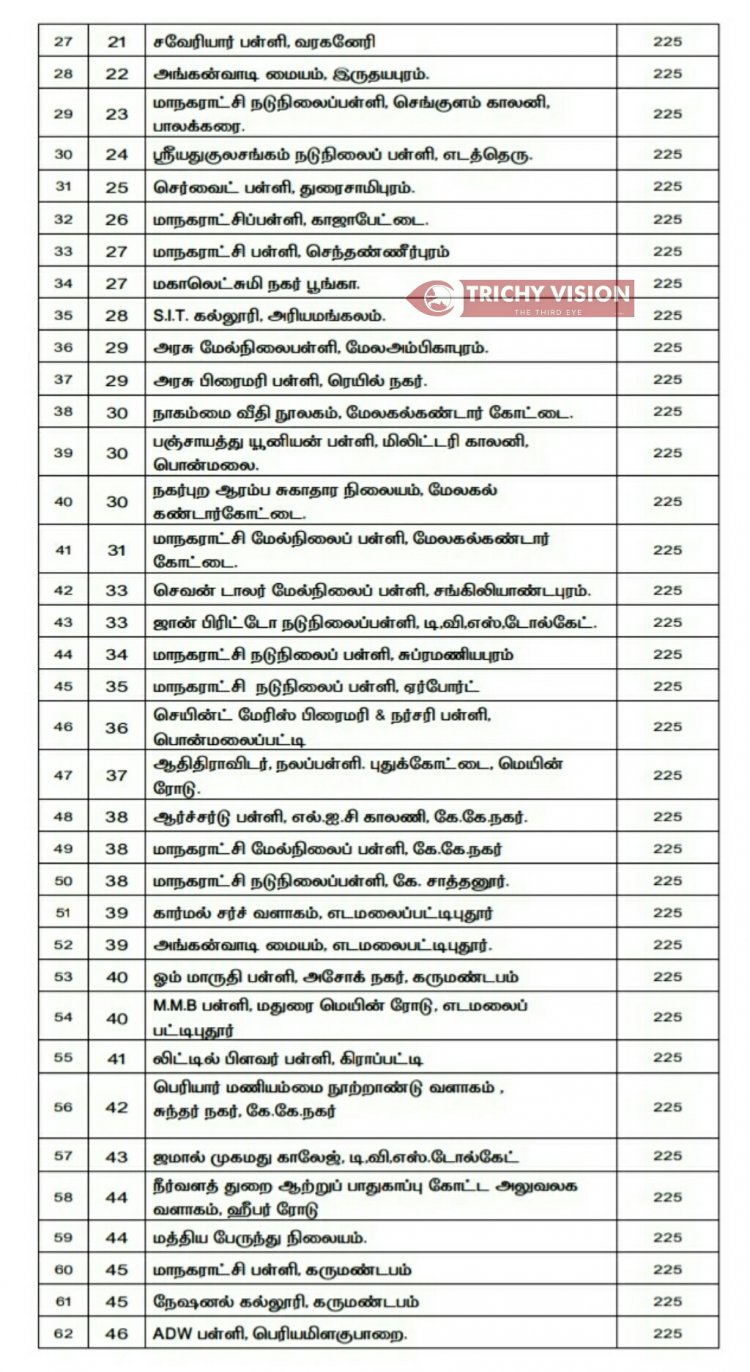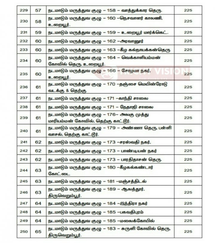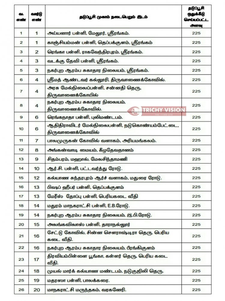 திருச்சி மாநகரில் 250 இடங்களில் நாளை (30.10.2021) கோவிட் தடுப்பூசி போடப்படும் இடங்கள்