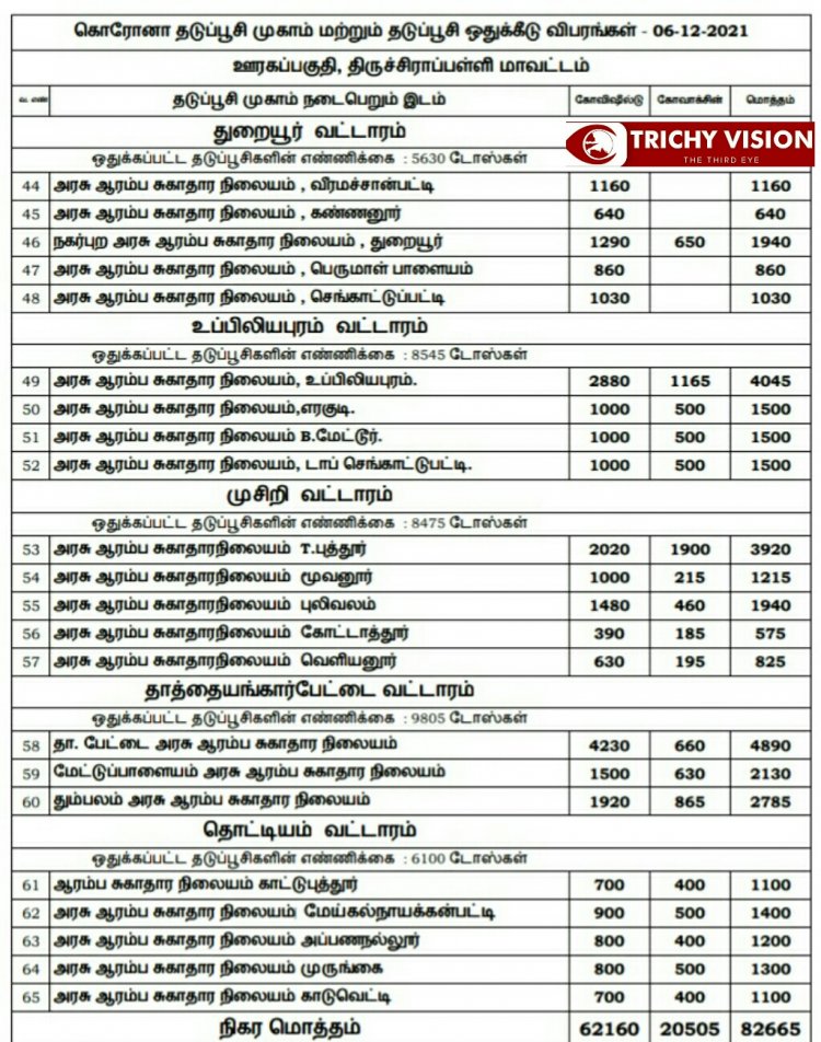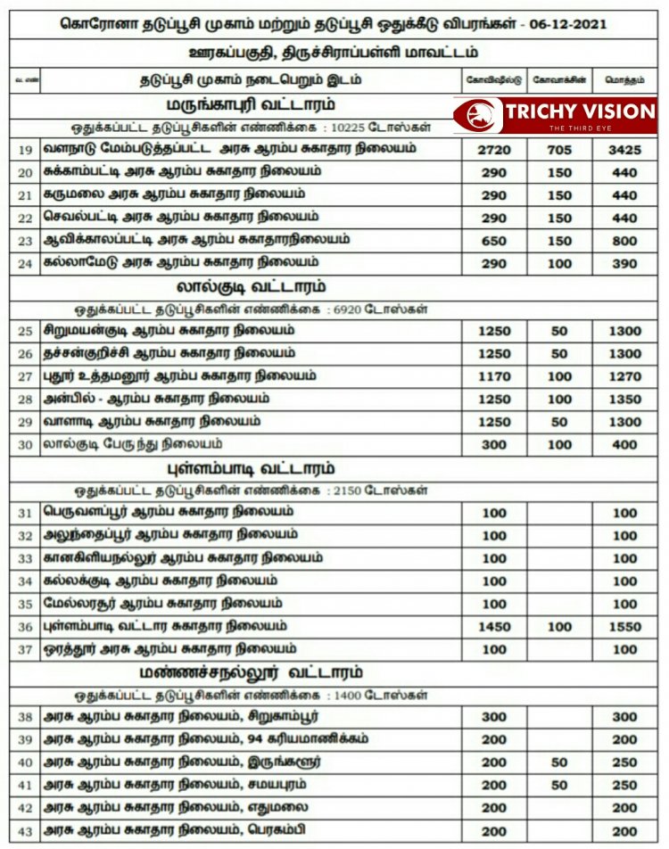 திருச்சி மாவட்டத்தில் இன்று (06.12.2021) கோவிட் தடுப்பு ஊசி போடப்படும் இடங்கள்