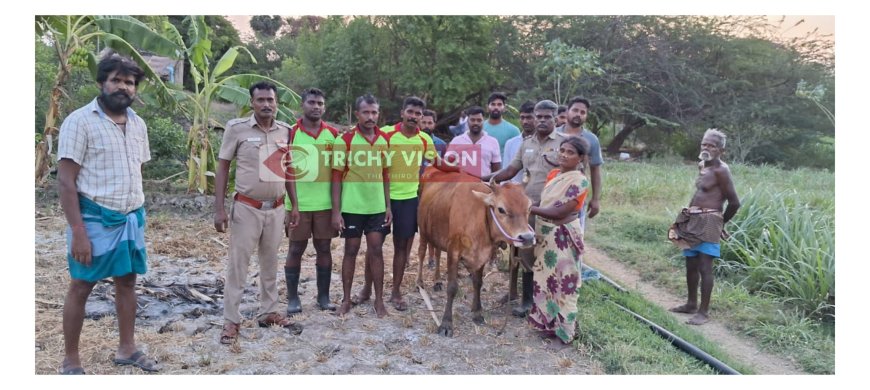 அப்போது அங்குள்ள 50 அடி ஆழமுள்ள விவசாயக் கிணற்றில் மேச்சலுக்கு சென்ற பசு மாடு எதிர்பாரத விதமாக தவறி விழுந்தது. இதுகுறித்து சென்னையில் உள்ள தீயணைப்பு கட்டுப்பாட்டு அறைக்கு பொதுமக்கள் தகவல் கொடுத்தனர். சென்னை கட்டுப்பாட்டு அறையில் இருந்து புள்ளம்பாடி தீயணைப்பு நிலையத்திற்கு தகவல் கொடுத்தனர்.