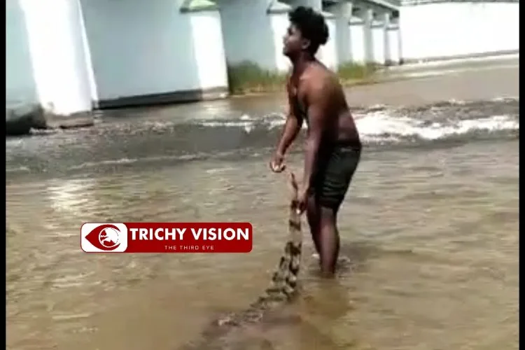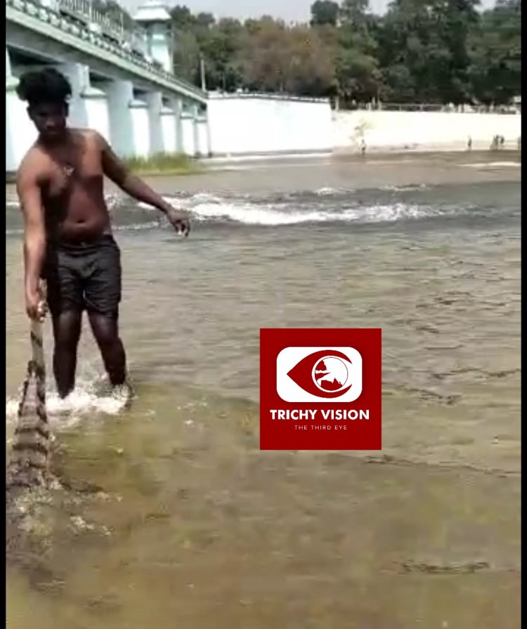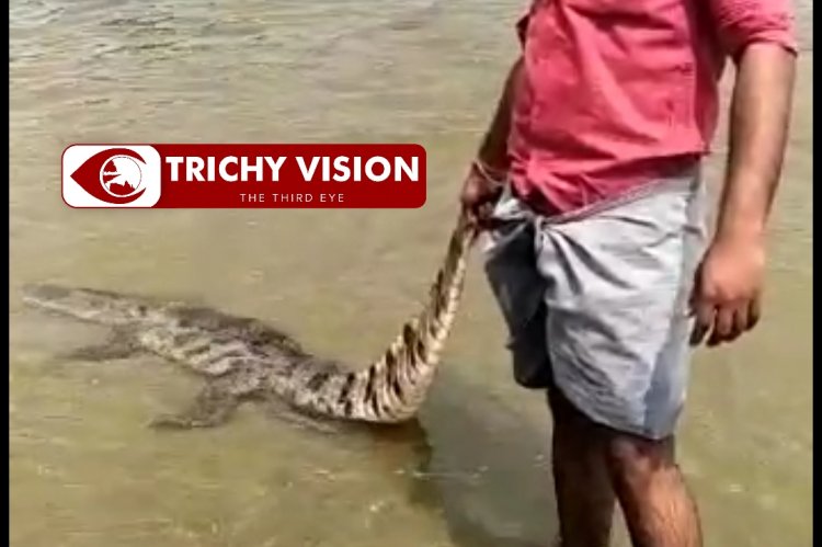திருச்சி மாவட்டம் முக்கொம்பில் சுற்றுலா வரும் பொதுமக்கள் காவிரி ஆற்றில் குளிப்பது வழக்கம். இந்த நிலையில் கடந்த சில தினங்களுக்கு முன்பு இளைஞர்கள் சிலர் குட்டி முதலை ஒன்றின் வாலை பிடித்து தரதரவென இழுத்து விளையாடுகின்றனர்.