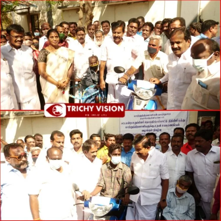 முன்னதாக சட்டமன்ற உறுப்பினர் தொகுதி மேம்பாட்டு நிதியிலிருந்து ரூபாய் 1.5 லட்சம் மதிப்பில் என்ற 2 நபருக்கு இணைப்பு சக்கரம் பொருத்தப்பட்ட பெட்ரோல் ஸ்கூட்டர்கள், மூன்று சக்கர சைக்கிள்கள், மடக்கு சக்கர நாற்காலிகள், முடநீக்கியல் சாதனம் போன்றவற்றை மாற்றுத் திறனாளிகளுக்கு வழங்கினார்.