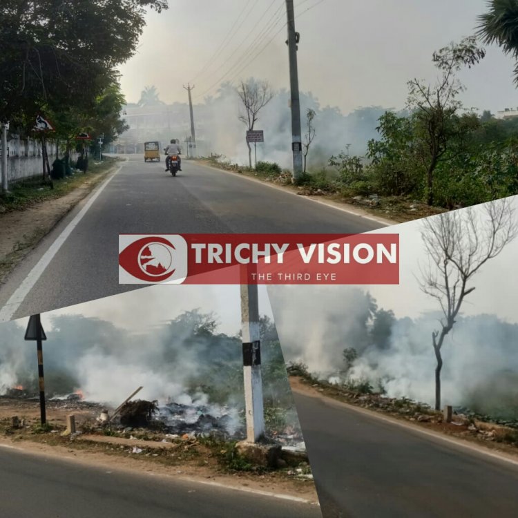மாநகராட்சி நிர்வாகம் சாலையோர குப்பை எரிப்பதால் சுகாதாரதிருச்சி மாநகர பகுதிகளில் துப்புரவு பணியாளர்கள் வீடுகளுக்கே நேரில் வந்து குப்பையை வாங்கி, நுண் உர செயலாக்க மையங்களுக்கு கொண்டு செல்கின்றனர். எனிலும் சில தொழில் நிறுவனங்கள், கோழி கடைகளின் கழிவுகள், நடைப்பாதை கடைகள் நடத்தக் கூடியவர்கள் தங்களது குப்பை மற்றும் தொழில் கழிவுகளை முறைப்படி மாநகராட்சி நிர்வாகத்திடம் அளிக்காமல், சாலையோரங்களில் கொட்டுகின்றனர். மேலும் சில பகுதிகளில் மாநகராட்சி துப்புரவு பணியாளர்கள் முன்பு போல நாள்தோறும் குப்பை வாங்க வராததால் பொதுமக்கள் தங்களது வீடுகளில் உள்ள குப்பையை சாலையோத்தில் கொட்டுவதை வாடிக்கையாக்கி விட்டனர். இதனால் நகரில் சுகாதார சீர்கேடு நிலவி வருகிறது.