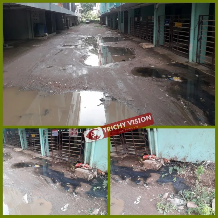 திருச்சியில் தொடர்ந்து பெய்து வரும் மழையால் ஆங்காங்கே தண்ணீர் தேங்கி வரும் சூழலில் தற்போது கழிவு நீரும் கலக்கின்றது.கொசு உற்பத்திக்கான சூழலை உருவாக்கியுள்ளது.இதனால் அப்பகுதி மக்கள் டெங்கு காய்ச்சல் ஏற்படுவதற்கான சூழல் இருக்கும்பட்சத்தில் மாநகராட்சி இதற்கான எவ்வித நடவடிக்கையும் எடுக்கவில்லை என்று குற்றம் சாட்டியுள்ளனர்.