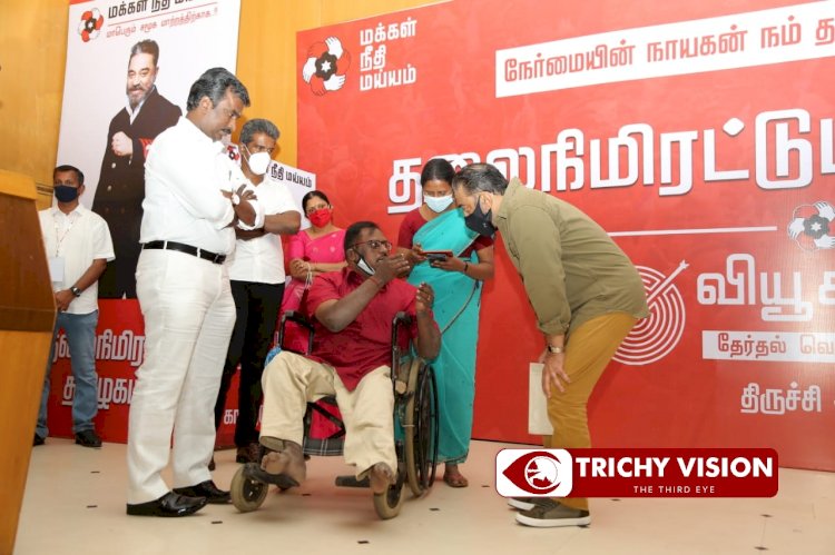 திருச்சியில் மக்கள் நீதி மய்யம் தலைவர் கமலஹாசன் தேர்தல் பிரச்சாரத்தை தொடங்க உள்ள நிலையில் அவருக்கு உற்சாக வரவேற்பு அளிக்கப்பட்டது. தலைநிமிரட்டும் தமிழகம் என்ற பெயரில், தமிழகம் முழுவதும் மக்கள் நீதி மய்யம் தலைவர் கமலஹாசன், தேர்தல் பிரச்சாரத்தை மேற்கொண்டு வருகிறார். இதற்காக இன்று சென்னையிலிருந்து மதுரை சென்றுள்ளார். தொடர்ந்து தற்போது திருச்சி விமான நிலையம் அருகே உள்ள தனியார் ஹெலிகாப்டர் இறங்கு தளத்தில் வந்து இறங்கினர்.