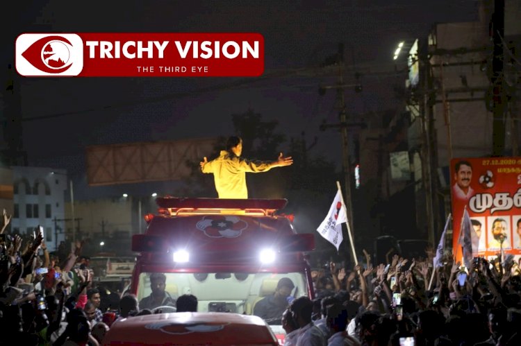 அதனைத் தொடர்ந்து திருச்சி சத்திரம் பேருந்து நிலையம் அண்ணா சிலை பகுதிக்கு சென்றார். அங்கு பேசிய போது… “மக்கள் மாற்றத்திற்கு தயாராகி விட்டனர். அமைச்சர்கள் சேர்த்த கூட்டம் காசு குடுத்து சேர்த்த கூட்டம். ஆனால் இங்கு கூடியிருக்கின்ற கூட்டம் நேர்மையாக தானாக சேர்ந்த கூட்டம். நான் ஒன்றும் சினிமா நட்சத்திரம் அல்ல நான் உங்கள் வீட்டில் வைத்து கொள்ள வேண்டிய சிறிய விளக்கு. இந்த விளக்கு உங்கள் வீட்டிற்கும் வெளிச்சைதையும் மாற்றத்தையும் தரும்” என்றார்