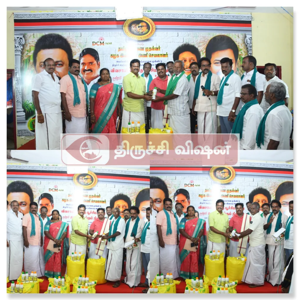 திருச்சி தெற்கு மாவட்ட கழக செயலாளர் அமைச்சர் முனைவர் அன்பில் மகேஸ் பொய்யாமொழி அவர்களின் வழிகாட்டுதலின் பேரில் கழக இளைஞரணிச் செயலாளர் துணை முதலமைச்சர் உதயநிதி ஸ்டாலின் அவர்களின் பிறந்தநாள் திருச்சி தெற்கு மாவட்ட மாநகர விவசாய அணி சார்பாக கல்லுக்குழி பகுதியில் அமைந்துள்ள சமுதாய கூடத்தில் விவசாயிகளுக்கு பூச்சி மருந்து மற்றும் உரம் வழங்கும் நிகழ்வு நடைபெற்றது.