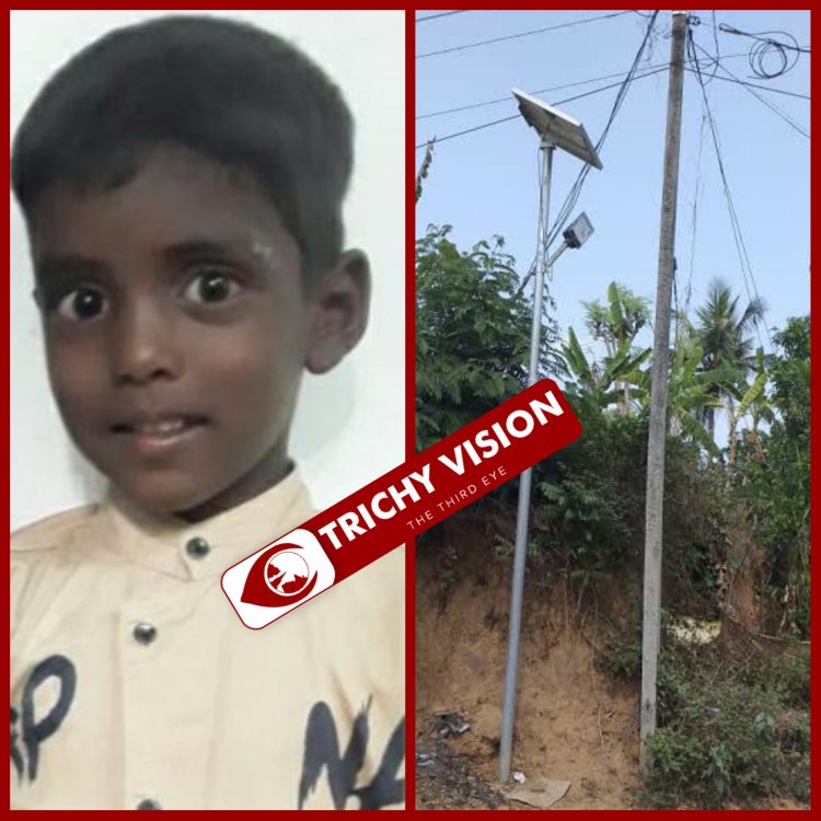 லால்குடி அருகே நெருஞ்சலக்குடி ஊராட்சியில் உள்ள பள்ளிவயல் கிராமத்தில் வசிக்கும் செளந்தரராஜன் மகன் மகிலேஷ். ஏழு வயதான சிறுவன் விளையாடிக் கொண்டிருந்தான். அப்பொழுது கிராமத்தில் உள்ள தெரு விளக்கு மின்கம்பத்தை சுற்றி வந்தான் . திடீரென தெருவிளக்கு மின் கம்பத்தினை பிடித்து விளையாடிய போது எர்த் கம்பியில் மின்சாரம் பாய்ந்ததில் சிறுவன் அந்த இடத்திலேயே உயிரிழந்தான்.