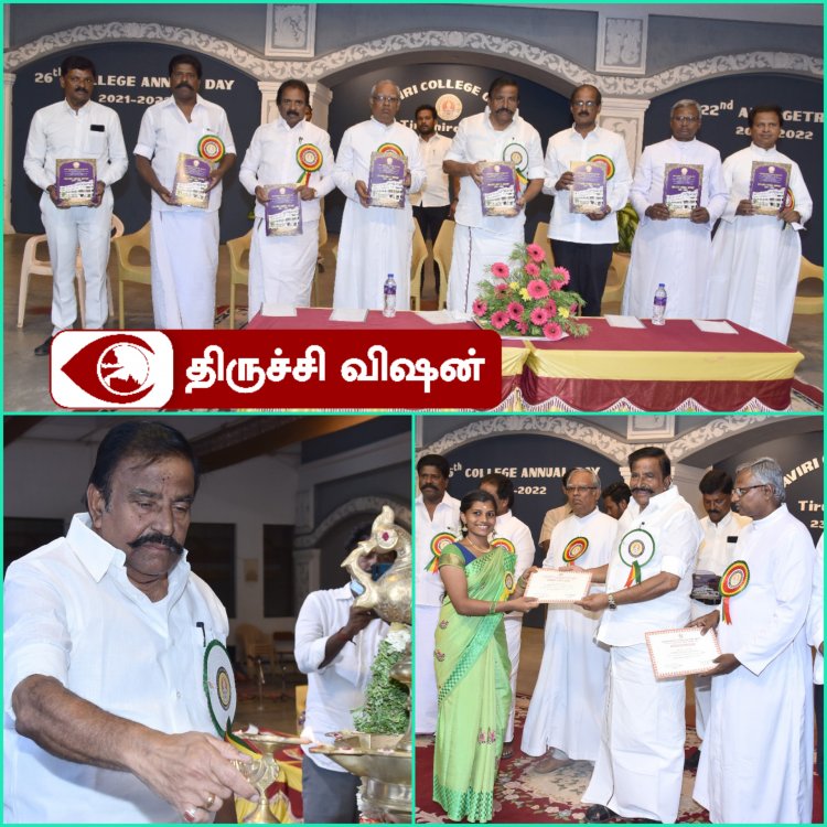 நிகழ்வில் குத்து விளக்கேற்றி தொடங்கி வைத்து கல்லூரியின் ஆண்டறிக்கை 2021-22 நூலை நகராட்சி நிர்வாகத்துறை அமைச்சர் கே.என்.நேரு வெளியிட முதல் படியினை கல்லூரி முதல்வரும் செயலரும் பெற்றுக்கொண்டனர். தொடர்ந்து கல்வியாண்டின் சிறந்த மாணவர்கள், சிறந்த தலைமைத்துவ மாணவர்கள், சிறந்த நடனக்குழு மாணவர்கள், சிறந்த NSS தன்னார்வலர்கள், சிறந்த நூலகப் பயன்பாட்டு மாணவர்களுக்கான சான்றிதழ்களை அமைச்சர் வழங்கினார்.
