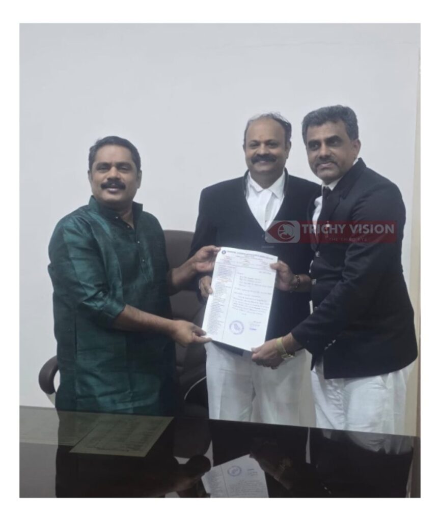 பார் கவுன்சில் ஆஃப் தமிழ்நாடு தலைவர் P.S.அமல்ராஜ் மற்றும் பார் கவுன்சில் ஆஃப் தமிழ்நாடு துணைத் தலைவர் V. கார்த்திகேயன் ஆகியோரிடம் திருச்சிராப்பள்ளி குற்றவியல் வழக்கறிஞர் சங்கம் சார்பாக செயலாளர் P.V.வெங்கட் மனு அளித்தனர்.