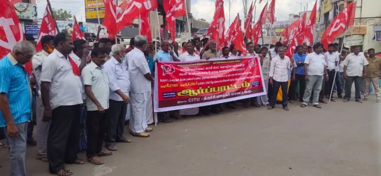 ஜாமீனில் வெளியே வரமுடியாத பிரிவின் கீழ் வழக்கு பதிவு செய்து மத்திய சிறையில் அடைக்கப்பட்டுள்ள சிஐடியு நிர்வாகிகளை விடுதலை செய்ய கோரி ஆர்ப்பாட்டம் செய்தனர்.