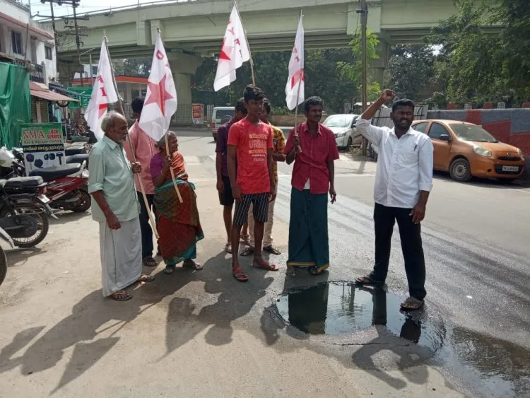 திருச்சி மிளகுபாறை கோரிமேடு பகுதியில் பாதாள சாக்கடையில் அடைப்பு ஏற்பட்டு கழிவுநீர் சாலையில் வழிந்தோடியதை கண்டித்து DYFI அமைப்பினர் ஆர்பாட்டத்தில் ஈடுபட்டனர்.