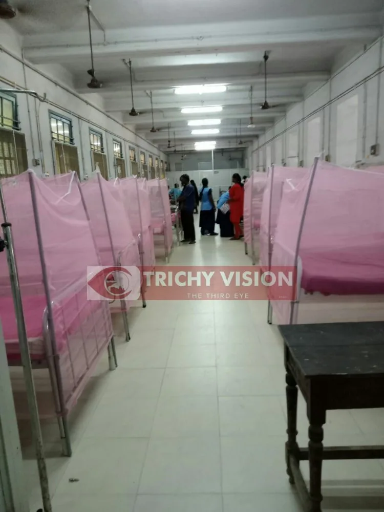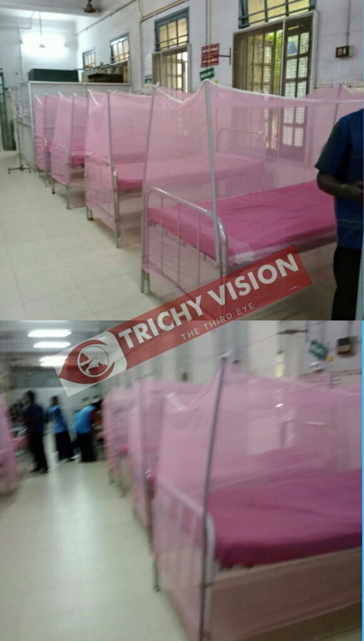 தற்போது மழை காலத்தால் நோய் பாதிப்பு ஏற்படக்கூடாது என்பதை அடுத்து முன்னெச்சரிக்கை நடவடிக்கையாக திருச்சி அரசு மருத்துவமனையில் எஃப் எம் இரண்டாவது வார்டில் 30 படுக்கைகளுடன் கூடிய டெங்கு வார்டு ஏற்படுத்தப்பட்டு உள்ளது. முற்றிலும் அனைத்து படுகைகளிலும் கொசு வலை கட்டி தயாராக தயாராக வைக்கப்பட்டுள்ளது.