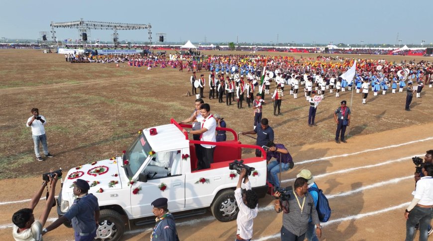 அதனைத் தொடர்ந்து குளோபல் டெவலப்மென்ட் வில்லேஜை தொடங்கி வைத்து பார்வையிட்டார். பிறகு பாரம்பரிய முறைப்படி சாரண சாரணியரின் சார்பாக துணை முதல்வர் அவர்களுக்கு வரவேற்பளிக்கப்பட்டது.தொடர்ந்து பாரத சாரண – சாரணியர் இயக்க வைரவிழா மற்றும் முத்தமிழறிஞர் கலைஞர் நூற்றாண்டு நினைவு பெருந்திரளணி (special Jamboree) விழாவை தமிழ்நாடு துணை முதலமைச்சர் உதயநிதி ஸ்டாலின் கொடியேற்றி தொடங்கி வைத்து இலங்கை, மலேஷியா, சவுதி அரேபியா, நேபால், மற்றும் இந்தியாவில் உள்ள ஒவ்வொரு மாநில பாரத சாரண – சாரணியர் கம்பீரமாக அணி வகுத்து வந்தனர், அணி வகுப்பு மரியாதையை துணை முதலமைச்சர் ஏற்றுக்கொண்டார்….