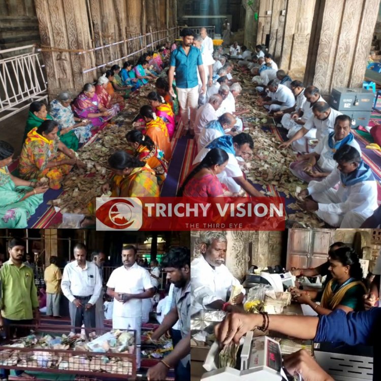 திருச்சி ஸ்ரீரங்கம் ரெங்கநாதர் சுவாமி திருக்கோவிலில் பக்தர்களால் செலுத்தப்பட்ட உண்டியல் காணிக்கை ஒவ்வொரு மாதமும் எண்ணப்படுவது வழக்கம். அதன்படி கடந்த மாதம் 15ஆம் தேதி முதல் இந்த மாதம் 14ஆம் தேதி வரை பக்தர்களால் செலுத்தப்பட்ட காணிக்கை உண்டியல்கள் அனைத்தும்