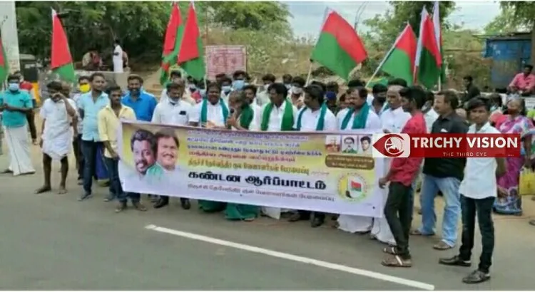 திருச்சி தேவேந்திர குல வேளாளர்கள் பேரமைப்பு சார்பாக ஜீயபுரம் கடைவீதியில் காவிரி ஆற்றின் குறுக்கே மேகதாது என்ற அணையை கட்டியே தீர்வேன் என்று கூறிய கர்நாடாக அரசின் முதலமைச்சரை கண்டித்தும், மேகதாது அணை கட்டும் முயற்சியை தடுக்க வலியுறுத்தியும் மாபெரும் கண்டன ஆர்ப்பாட்டம் நடைபெற்றது.