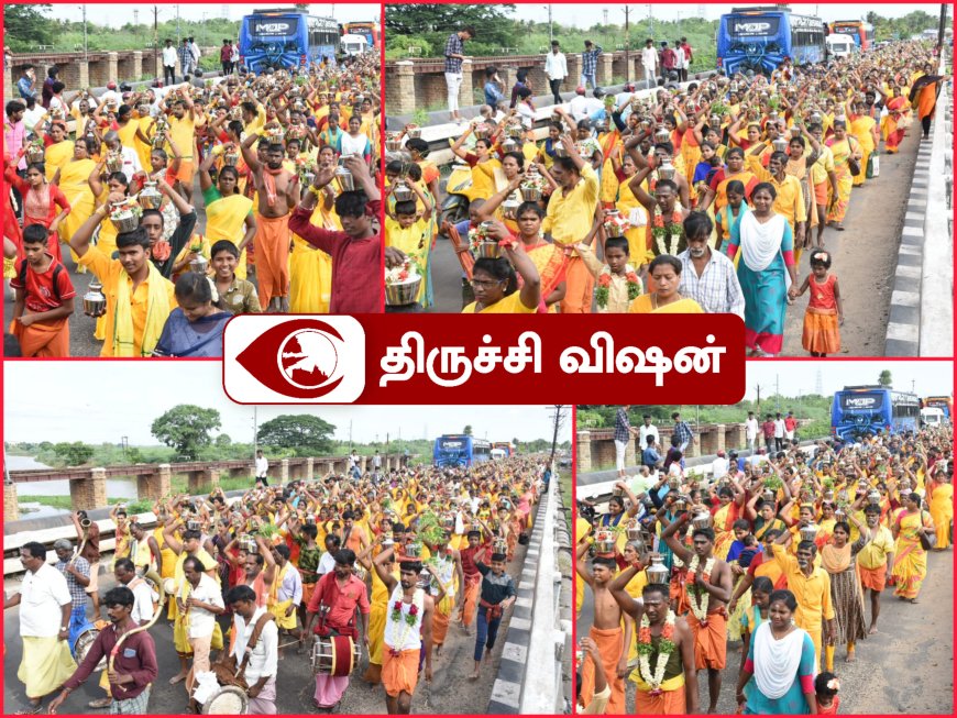 கும்பாபிஷேகத்தை ஒட்டி அய்யாளம்மன் படித்துறையில் இருந்து பீமநகர் செடல் மாரியம்மன் கோவில் இருக்கு தீர்த்த குடம் ஆயிரக்கணக்கான மக்கள் எடுத்து வந்தனர்.
