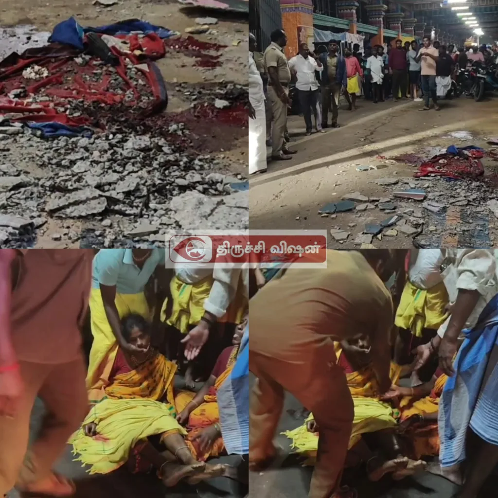 உடனடியாக அருகில் இருந்த மற்ற பக்தர்கள் ரத்த வெள்ளத்தில் கிடந்த இருவரையும் மீட்டு 108 ஆம்புலன்ஸ் உதவியுடன் திருச்சி மகாத்மா காந்தி அரசு மருத்துவமனைக்கு அனுப்பி வைத்தனர்.