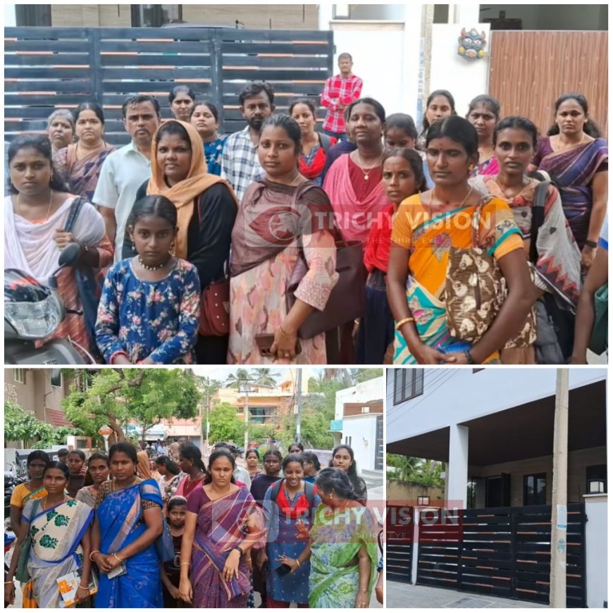 திருச்சி தென்னூர் அண்ணா நகர் பகுதியில் பள்ளிக்கல்வித்துறை அமைச்சர் மகேஸ் இல்லம் உள்ளது. இல்லத்திற்கு முன்னதாக 50க்கும் மேற்பட்ட கணினி பட்டதாரி ஆசிரியர்கள் குடும்பத்துடன் தர்ணா போராட்டத்தில் ஈடுபட்டு வருகின்றனர்.