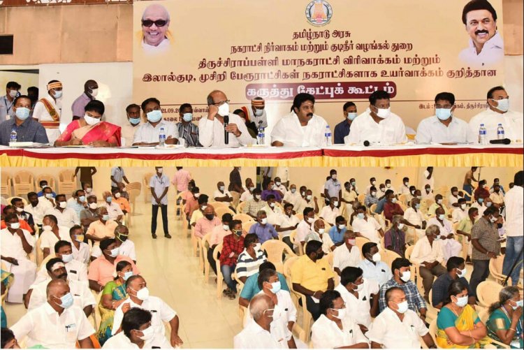இந்நிலையில் திருச்சி கலையரங்கம் திருமண மண்டபத்தில் மாவட்ட ஆட்சியர் சிவராசு தலைமையில் திருச்சி மாநகராட்சி விரிவாக்கம் மற்றும் லால்குடி, முசிறி பேரூராட்சிகள், நகராட்சிகளாக உயர்வாக்கம் குறித்தான பொதுமக்கள் கருத்துக்கேட்பு கூட்டம் நடைபெற்றது.
