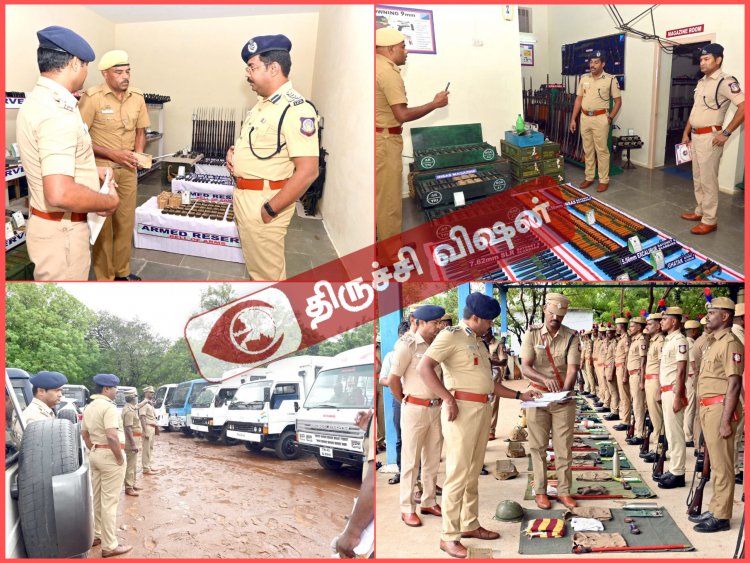 திருச்சி சரக காவல்துறை துணைத் தலைவர் சரவண சுந்தர் திருச்சி மாவட்ட ஆயுதப்படையில் வருடாந்திர ஆய்வுப் பணிகளை மேற்கொண்டார்.