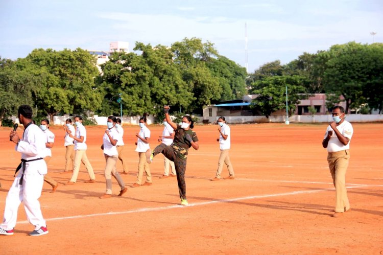 இன்று நடைபெற்ற பயிற்சியில் தற்காப்பு கலை பயிற்சி ஜூடோ, கராத்தே பயிற்சிகள் பயிற்சியாளர்களை வைத்து பயிற்சி கொடுக்கப்பட்டது. அப்போது திருச்சி சரக டிஐஜி ஆனி விஜயா,