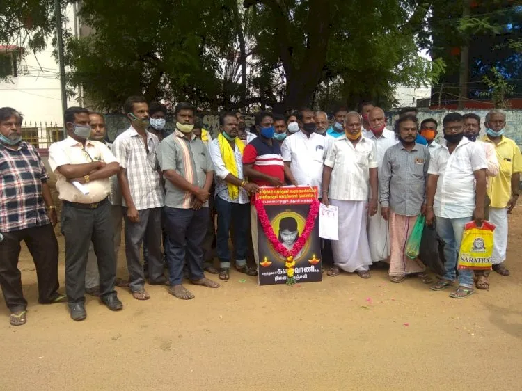 முடிதிருத்தும் தொழிலாளர்கள் சங்கம் சார்பாக சங்க மாவட்ட செயலாளர் தர்மலிங்கம் தலைமையில் மாவட்ட ஆட்சியர் அலுவலகம் அருகே அவருடைய படத்திற்கு அஞ்சலி செலுத்தி அமைதியாக மனு கொடுக்கும் போராட்டத்தை நடத்தினர். சிறுமியை பாலியல் வன்கொடுமை செய்து  கொலை செய்யப்பட்டவரை விடுவித்ததை கண்டித்து இந்த போராட்டம் நடைபெற்றது. இப்போராட்டத்திற்கு முடிதிருத்தும் நலசங்கத்தை  ஏராளமானோர் கலந்து கொண்டனர்.