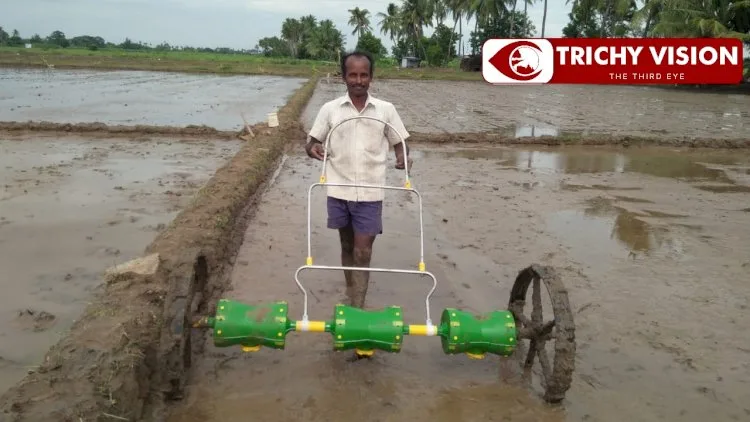 திருச்சி சிறுகமணி பகுதியை சேர்ந்தவர் சரவணன். முதுகலை தாவரவியல் படித்துவிட்டு தற்போது விவசாயம் செய்து வருகிறார். புரட்டாசி மாசம் ஆரம்பித்தாலே நெல் நடவும் பணியில் விவசாயிகள் களம் இறங்குவர். ஆனால் விவசாயி சரவணன் முற்றிலும் மாறுபட்ட முறையில் ட்ரம் சீடர் முறையை கொண்டு குறைந்த செலவில் அதிக மகசூல் பெறுவதற்காக நெல் நடவில் இறங்கியுள்ளார்.