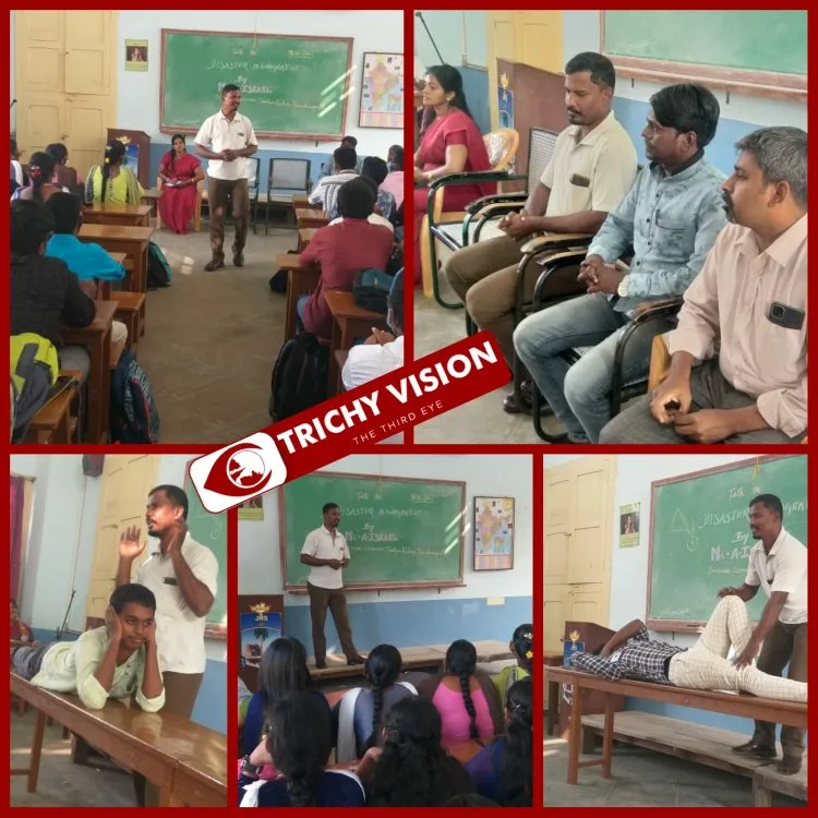 பேரிடர் காலத்தில் மாணவ, மாணவிகள் பொதுமக்கள் எவ்வாறு பாதுகாப்பு மற்றும் விழிப்புணர்வுடன் இருக்கவேண்டும் என்பதைப் பற்றி செயல்முறை வாயிலாக இக் கருத்தமர்வு நடத்தப்பட்டது.