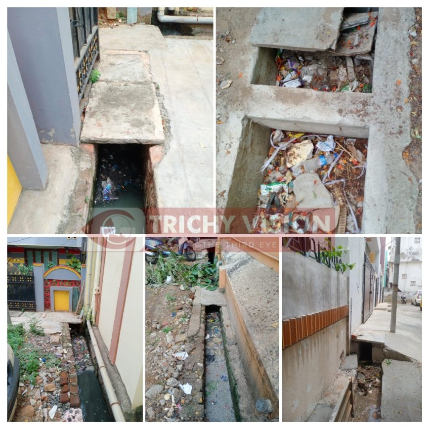திருச்சி தென்னூர் அண்ணாநகர் முதல் தெரு மற்றும் இரண்டாவது தெருவில் மழைநீர் வடிகால் கட்டுவதில் முறைகேடு நடந்துள்ளதாகவும், இதனால் 10 மீட்டருக்கு ஒரு இடம், 20 மீட்டர் ஒரு இடம் என ஆங்காங்கே விட்டு கட்டப்பட்டுள்ளது.