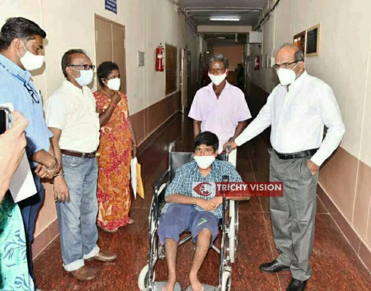 இதனைத் தொடா்ந்து, மாவட்ட ஆட்சித்தலைவர் சு.சிவராசு உடனடி நடவடிக்கை மேற்கொண்டு, மாற்றுத்திறனாளிகள் நலத்துறை சார்பில், ரூ.7500/- மதிப்புள்ள சக்கர நாற்காலியினை இரண்டு கால்களும் செயலிழந்த செல்வி.சம்பூரணத்திற்கு இன்று வழங்கினார்.