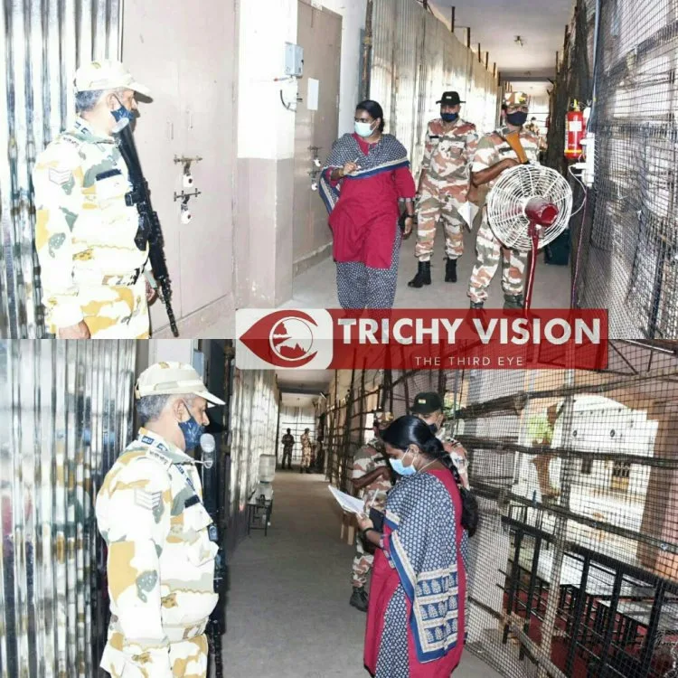 திருச்சி மாவட்டத்தில் 9 சட்டமன்ற தொகுதிகளில் பதிவான மின்னணு வாக்குப்பதிவு இயந்திரங்கள் ஜமால் முகமது கல்லூரி, சாரநாதன் பொறியியல் கல்லூரி, ராமகிருஷ்ணா பொறியியல் கல்லூரி, துறையூரில் இமயம் கல்லூரி ஆகிய 4 வாக்கு எண்ணிக்கை மையங்களில் வைக்கப்பட்டுள்ளது. மேலும் பாதுகாப்பான அறையில் வைத்து பூட்டி சீல் வைக்கப்பட்டுள்ளதையெடுத்து 3 அடுக்கு பாதுகாப்பு போடப்பட்டுள்ளது.
