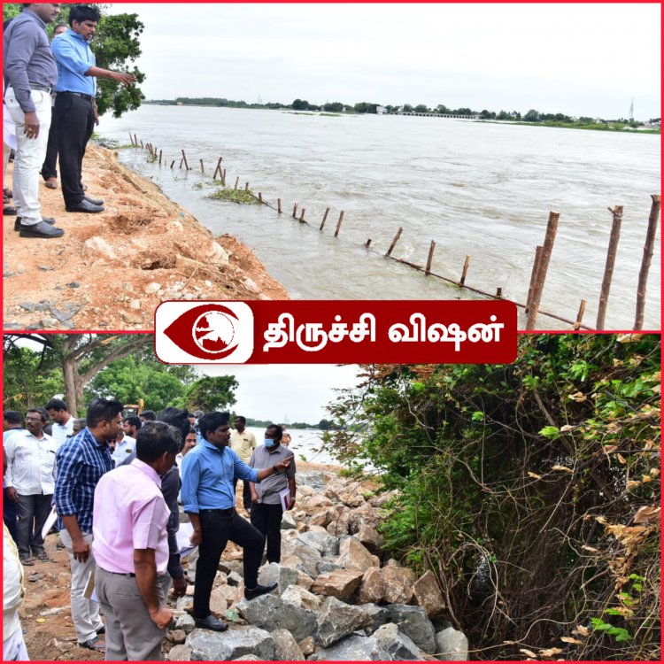ஸ்ரீரங்கம் மூலதோப்புப் பகுதியில் காவிரி ஆற்றின் நீர்வரத்தினை மாவட்ட ஆட்சித் தலைவர் மா. பிரதீப் குமார், நேரில் பார்வையிட்டு, ஆற்றின் கரை உறுதித் தன்மை குறித்து அலுவலரிடம் கேட்டறிந்து ஆய்வு செய்து உரிய பாதுகாப்பு நடவடிக்கைகளை மேற்கொள்ள அலுவலர்களுக்கு உத்தரவிட்டார்.