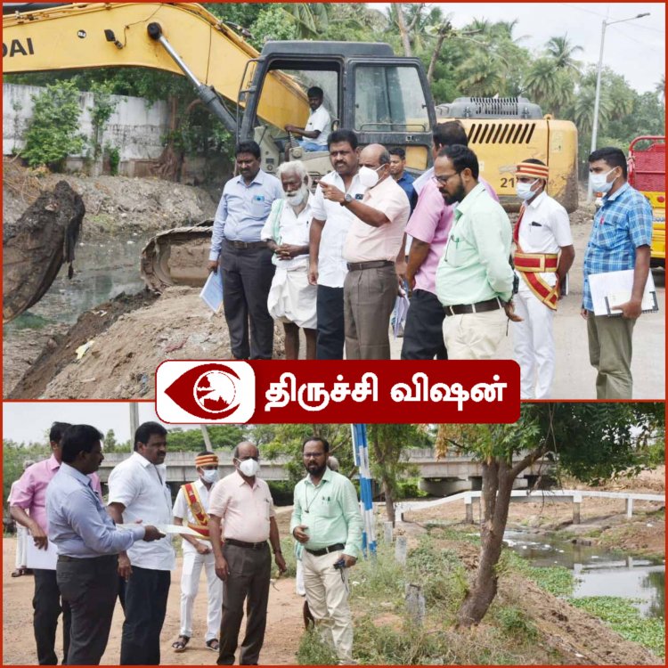திருச்சிராப்பள்ளி குழுமாயி அம்மன் கோவில் அருகில் உய்யக்கொண்டான் கால்வாய், புத்தூர் கலிங்கு அருகில் இருந்து வயலூர் சாலை பாத்திமா நகர் வழியாக அம்மையப்பன் நகர் வரையிலான குடமுருட்டி ஆறு தூர்வாரும் பணிகளை மாவட்ட ஆட்சித்தலைவர் நேரில் பார்வையிட்டு ஆய்வு செய்தார்.