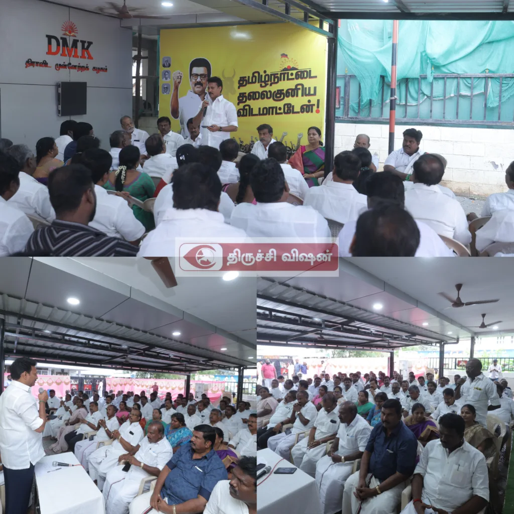 மாவட்ட அவைத் தலைவர் கோவிந்தராஜ் தலைமையில் மாவட்ட கழகச் செயலாளர் அமைச்சர் அன்பில் மகேஸ் பொய்யாமொழி முன்னிலையில் மாவட்ட செயற்குழு கூட்டம் நடைபெற்றது.