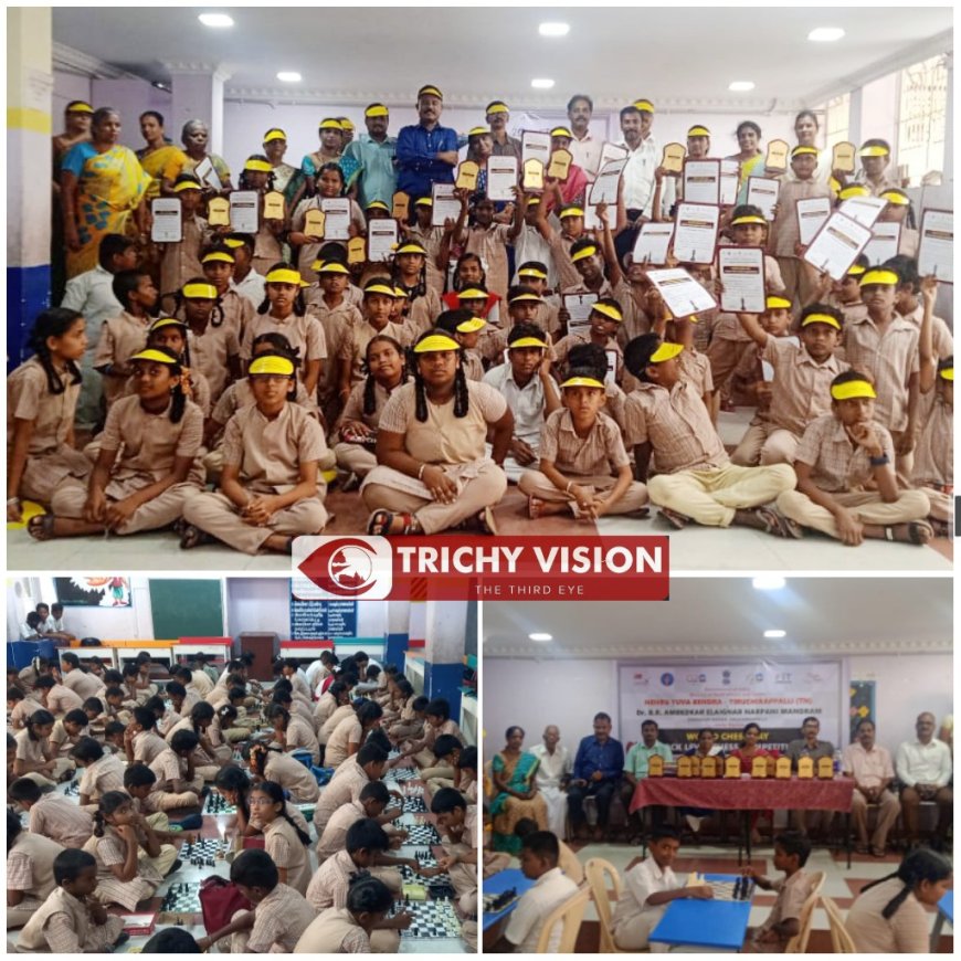 இந்திய அரசு, இளைஞர் நலன் மற்றும் விளையாட்டு அமைச்சகம் திருச்சிராப்பள்ளி மாவட்ட நேரு யுவ கேந்திரா மற்றும் பதுவைநகர் டாக்டர் பீ. ஆர். அம்பேத்கார் இளைஞர் நற்பணி மன்றத்தின் சார்பாக உலக செஸ் தினத்தை முன்னிட்டு பள்ளி மாணவ மாணவியருக்கான வட்டார அளவிலான செஸ் விளையாட்டுப் போட்டி ஸ்ரீரங்கம், டாக்டர் ராஜன் மாநகராட்சி நடுநிலைப் பள்ளியில் இன்று (20.07.2023) நடைபெற்றது.