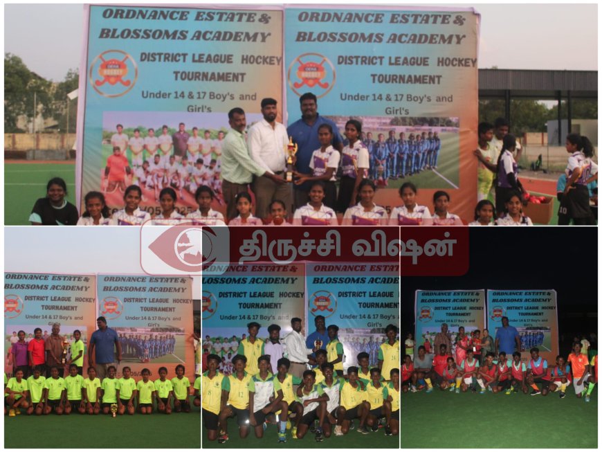 திருச்சியில் 14 வயதிற்கு உட்பட்ட ஆண்கள் பெண்கள் மற்றும் 17 வயதிற்கு உட்பட்ட ஆண்கள் பெண்கள் என்ற பிரிவில் ordanance estate &blossome academy சார்பில் மாவட்ட அளவிலான ஒரு நாள் ஹாக்கி போட்டி நேற்று நடைபெற்றது.