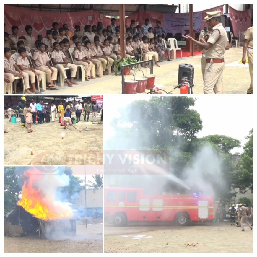 அதில் தீபாவளி பண்டிகையின் போது பாதுகாப்பாக பட்டாசு, வெடிபொருட்களை பற்றவைப்பது எப்படி? பட்டாசு மற்றும் மத்தாப்பு கொளுத்தும்போது ஏற்படும் திடீர் தீவிபத்தின்போது செய்யவேண்டிய பாதுகாப்பு மற்றும் தற்காப்பு நடவடிக்கை என்ன? பண்டிகையின் போது வீடுகளில் தீப்பற்றினால் அணைப்பது எப்படி என்பது குறித்த செய்முறை விளக்க நிகழ்ச்சியை பள்ளி மாணவ மாணவிகள் முன்னிலையில் நிகழ்த்தி காட்டினர்.