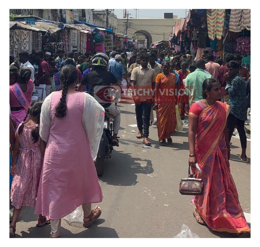 அக்டோபர் 31ஆம் தேதி வியாழக்கிழமை அன்று தீபாவளி பண்டிகை கொண்டாடப்பட உள்ள நிலையில் திருச்சி மாநகரில் முக்கிய கடைவீதி பகுதியாக இருக்கும் மலைக்கோட்டை, பெரியகடைவீதி மற்றும் என்எஸ்பி சாலை ஆகிய இடங்களில் மக்கள் கூட்டம் அதிகரித்த வண்ணமே உள்ளது.