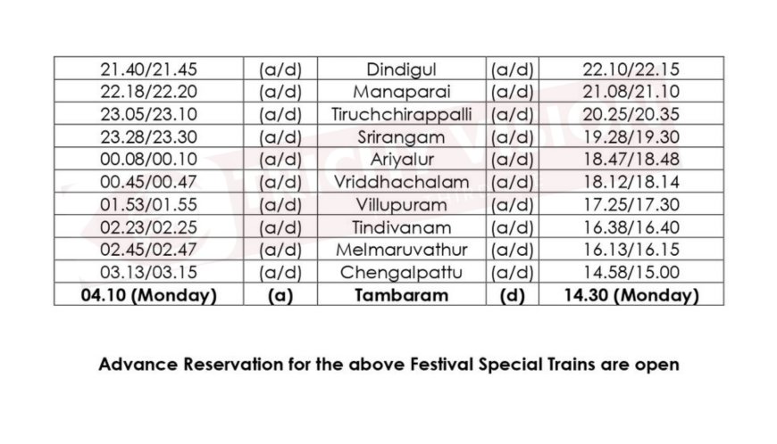 Train No.06003 என்ற இந்த ரயில் பயணத்திற்கான முன்பதிவு தொடங்கப்பட்டுள்ளதால் பயணிகள் முன்பதிவு செய்து கொள்ளவும்.