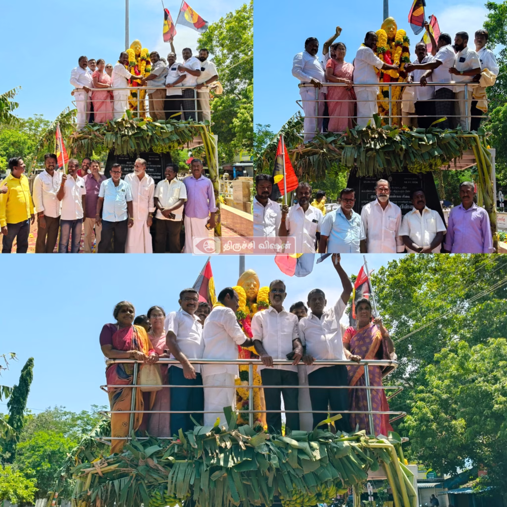 திருச்சியில் கப்பலோட்டிய தமிழர் வ.உ..சிதம்பரனாரின் 154 வது பிறந்த நாளை முன்னிட்டு திருச்சி நீதிமன்றம் எதிரில் உள்ள அவரது முழு உருவ சிலைக்கு தேமுதிகவினர் மாலை அணிவித்து மரியாதை செலுத்தினர். தேமுதிக மாநகர் மாவட்ட செயலாளர் டிவி கணேஷ் தலைமையில் வ உ சி சிலைக்கு மாலை அணிவித்து மரியாதை செலுத்தப்பட்டது. இந்நிகழ்ச்சியில் அவை தலைவர் சாகுல் ஹமீது, மில்டன் குமார், துணை செயலாளர்கள் பிரீத்தா விஜய் ஆனந்த், முத்துகுமார், விஜய் சுரேஷ், காளியப்பன் செயற்குழு மற்றும் பொதுக்குழு உறுப்பினர்கள் கலைப்புலி பாண்டியன், ராமு , லோகராஜ், ஐயப்பன், பெருமாள், ஜங்ஷன் பகுதி செயலாளர் வெங்கடேஷ், பொன்மலை பகுதி செயலாளர் அருள்ராஜ், உறையூர் பகுதி செயலாளர் மோகன், அரியமங்கலம் பகுதி செயலாளர் அலெக்ஸ், மகளிர் அணி செயலாளர் சுசிலா, நிஷா நிர்வாகிகள் செல்லத்துரை, செல்வராஜ், மாஸ் விஜி உள்ளிட்ட பலர் கலந்துகொண்டனர்.