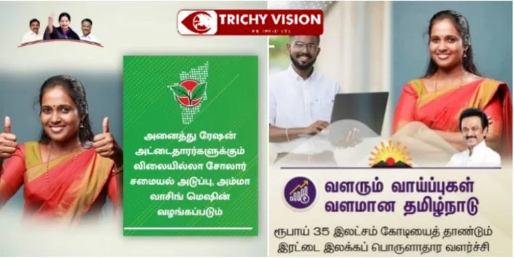 சில நாட்களுக்கு முன்பு அதிமுக மற்றும் திமுக இருவரும் வெளியிட்ட டிஜிட்டல் அறிக்கையில் ஒரே பெண்ணின் புகைப்படம் இடம் பெற்றது சர்ச்சைக்குள்ளானது. அதிமுகவின் சார்பில் வெளியிடப்பட்ட அறிக்கையின் சில தினங்களுக்குள் திமுகவும் தங்களது அறிக்கையை திருச்சியில் நடைபெற்ற பேரணியில் வெளியிட்டது. அதில் தங்கள் தேர்தல் அறிக்கைகளில் வாக்குறுதிகளை நிறைவேற்றுவதற்காக வாசகங்களை கொண்டிருந்ததன .
