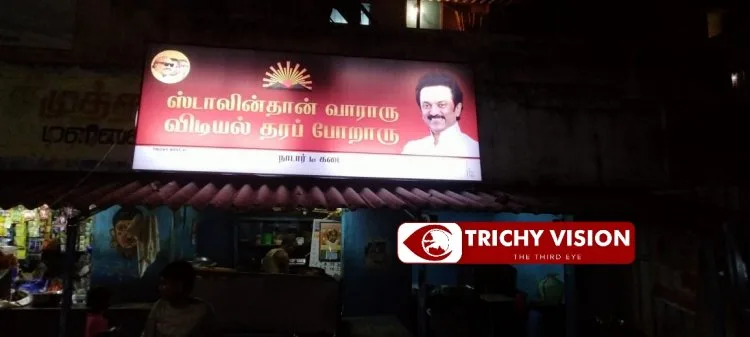 இந்நிலையில் திமுக தேர்தல் பிரச்சாரங்கள் பல்வேறு விதமாக மேற்கொண்டு வருகிறது. இதன் ஒரு பகுதியாக திருச்சி மாநகராட்சிக்கு உட்பட்ட 46வது வார்டு பெரிய மிளகுபாறையில் உள்ள கடைகளின் பெயர் பலகைகளில் திமுக தேர்தல் விளம்பரம் இடம் பெற்றிருக்கிறது. மின் விளக்குகள் பொருத்தப்பட்டு வைக்கப்பட்டுள்ள இந்த பிரச்சாரம் விளம்பர பதாகைகளில் திமுக தலைவர் மு க ஸ்டாலின் படம் இடம் பெற்றிருக்கிறது. இது மட்டுமின்றி “ஸ்டாலின் தான் வராரு விடியல் தர போறாரு” என்ற வாசகம் இடம் பெற்றிருக்கிறது.